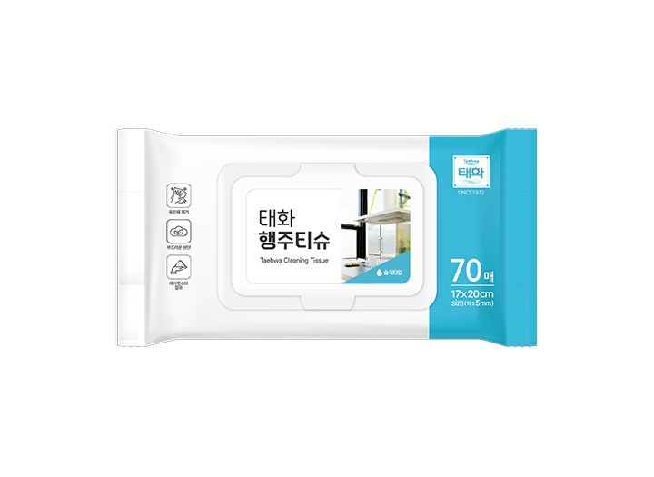 기획 태화 행주티슈(70매) 사이즈(단위/cm) 21.5*10cm 매수 70매 용도 세정제(일반용) 입상수 16입 바코드 8801179001490 규격 16*19(±0.5)cm 페이지 정보 작성자 태화 댓글 0건 조회 33회 작성일 26-04-13 13:42 목록으로 문의하기 PREVIOUS태화 에탄올 주방 세정 티슈(70매) 26.04.13 NEXT태화 속장갑(3매) 26.04.13 본문 주방에선 언제나 태화 태화는 창립 이래, 50년 넘게 최고의 품질로 인정받아 고 성장, 고 점유율을 자랑하는 영원한 스테디셀러 제품입니다. 물기 없는 상황에서도 태화 행주티슈로 깔끔하게 ! ●얼룩진 기름자국, 렌지후드, 가전제품, 쇼파, 모니터 등 간편 소독 ● 부드러운 원단으로 잔기스 걱정 없이 ● 베이킹 소다 함유 목록